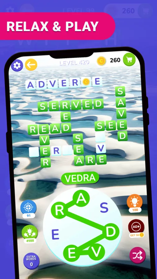 In the game, you will be given some letters to connect in the right order and create multiple words using them. For example, you may be given three letters: N, W, and O. You can spell NOW, OWN, and WON with these letters. If you spell correctly, you will go to the next level of the game. You will have more letters and more complex words to make as you move forward with the game.