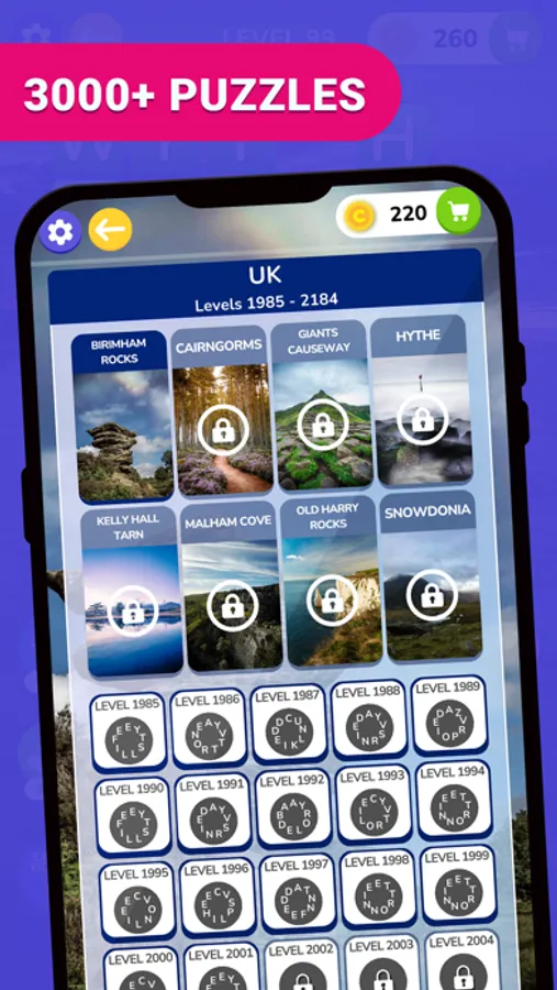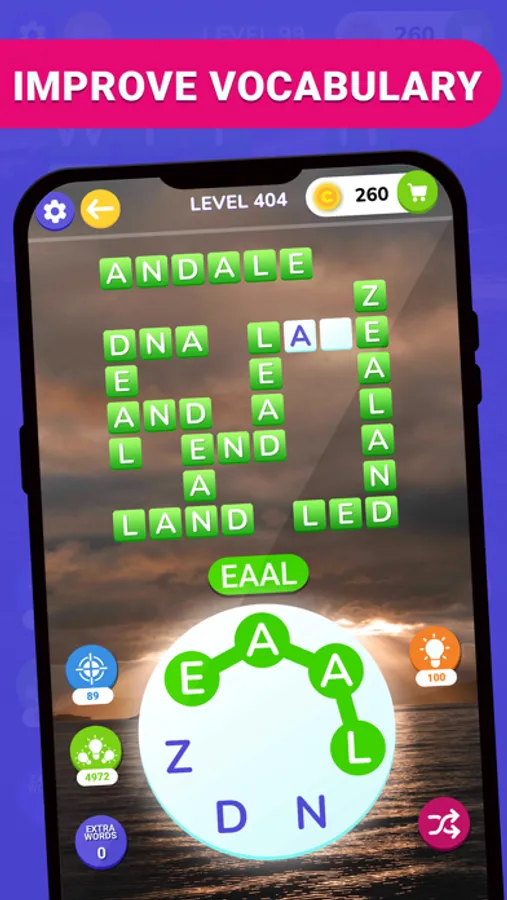 Go on a fun word trip or word quest with this delightful Word Scramble game featuring beautiful background images. Enjoy fantastic full HD natural sceneries in the background while having fun with this Wordplay Game.