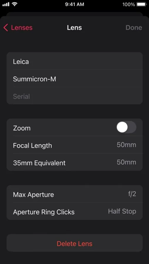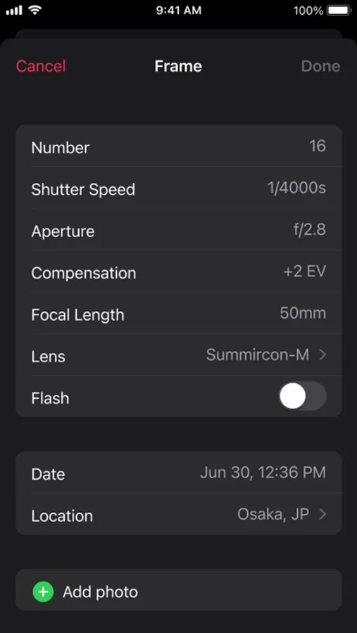 - Pre-filled lens/camera/stock/ISO rating when adding new films to save you some time