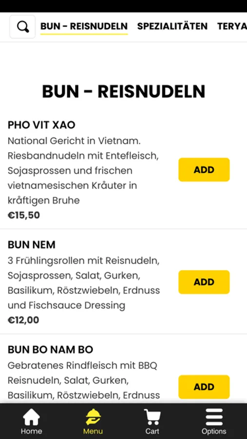 Mit der Hanoi Quan Mobile App können Sie Ihre Asiatische, Vietnamesisch bequem von zu Hause aus genießen. Stöbern Sie in unserer Speisekarte, wählen Sie die Gerichte aus, die Ihnen schmecken, und geben Sie Ihre Bestellung in Sekundenschnelle auf.