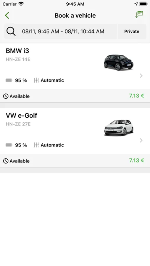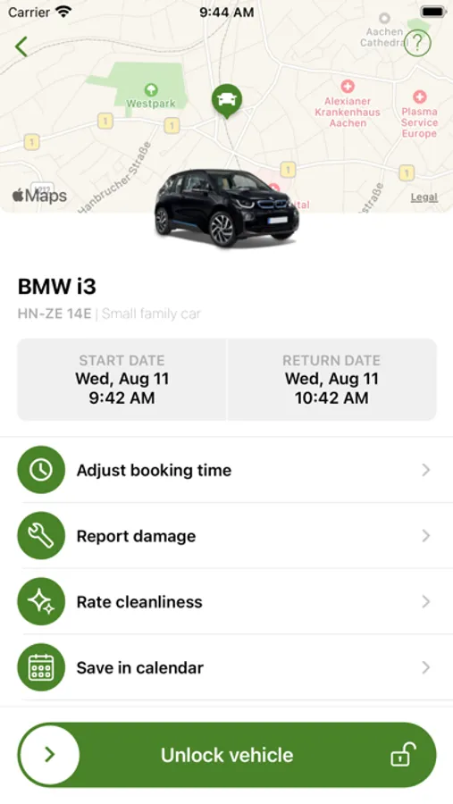 You can book spontaneously or plan your rides in advance. Open and close the car via app. The vehicle key you find in the glove compartment.