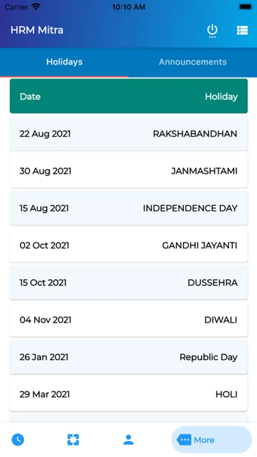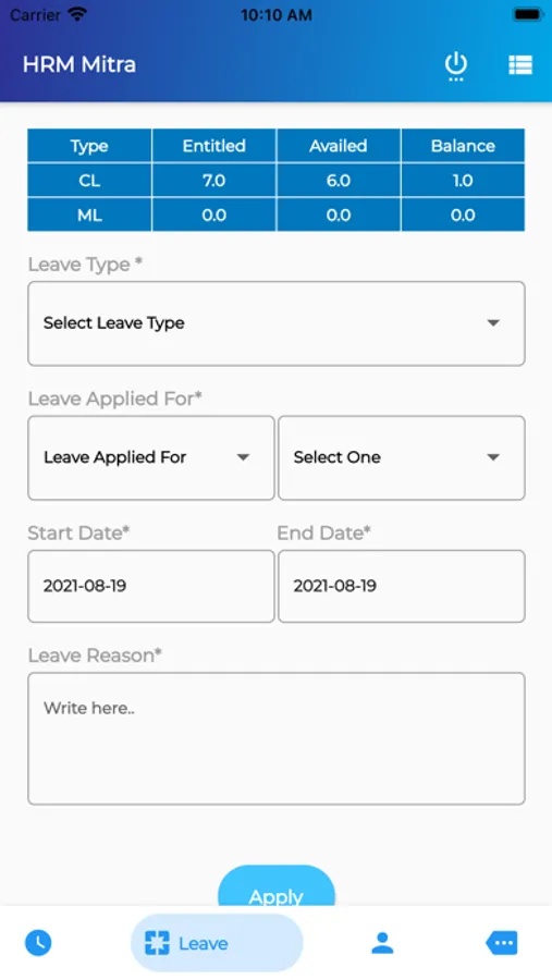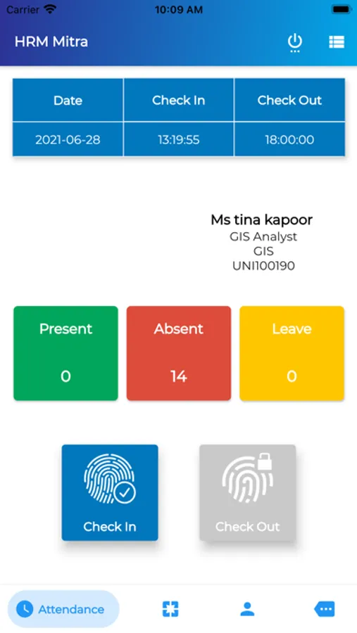 Employee can see personal profile in this App and can put attendance via checkin/checkout option. Employee can apply leave and can see status of leave.