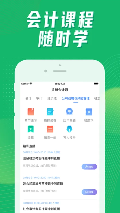 会计课程APP,专为会计学习考试设计的在线学习考试APP。