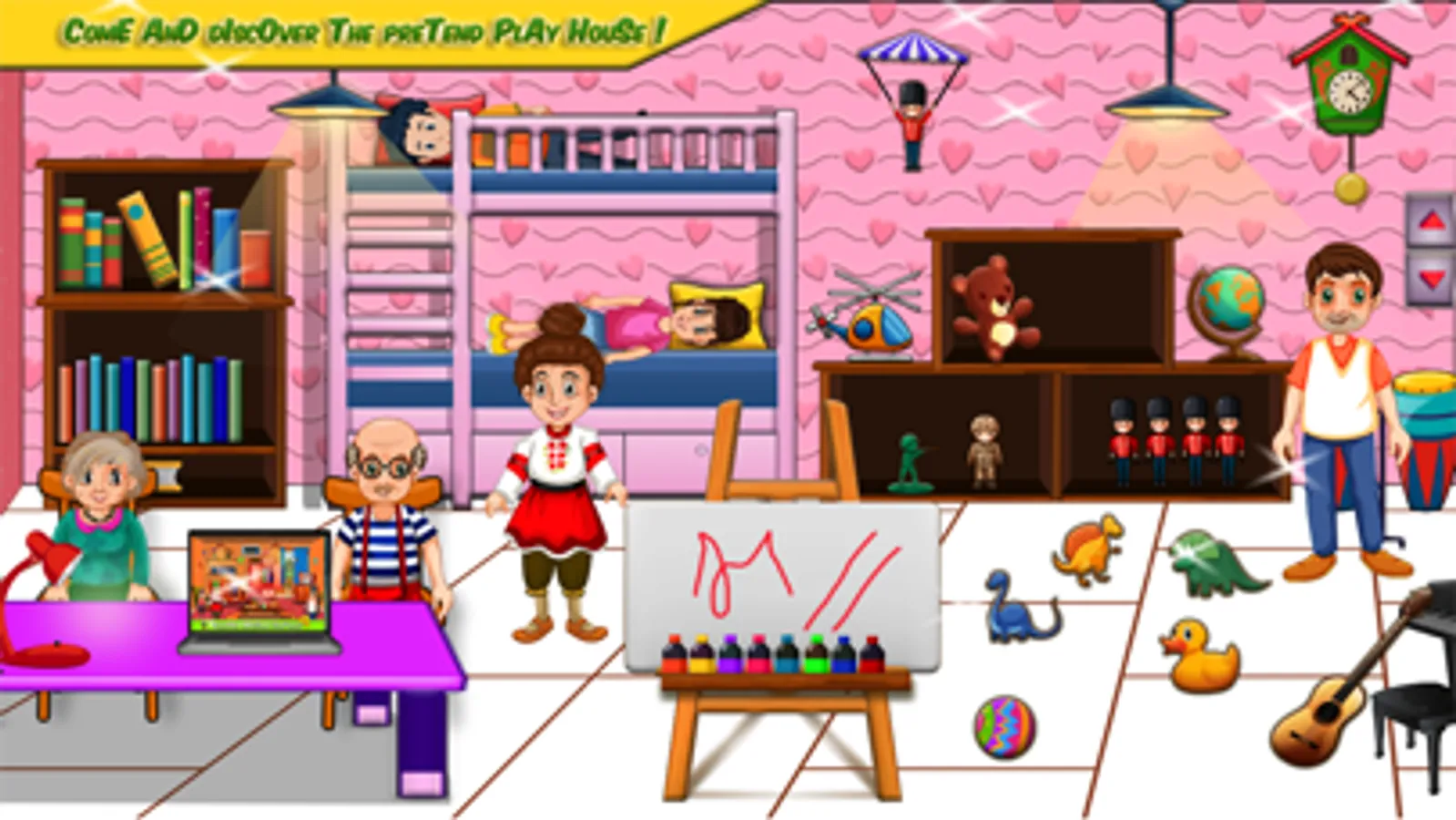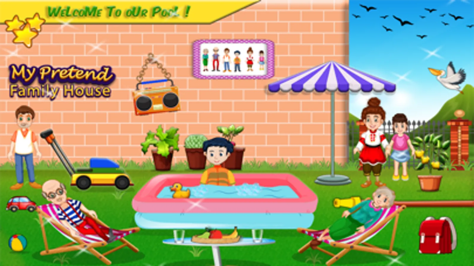 Welcome to My pretend play Family House - Dollhouse & Family Game. Explore your new home, find the hidden treasure, and create your own little story with mom, dad, & siblings in pretend family mansion. What is more fun than spending the day with your friends? It's an excellent opportunity to throw a party in the living room. Bake the pizza in the oven; turn on the disco lights, and let the music play. We offer boys & girls endless options for their very own pretend play game with so many rooms and characters. If you love to pretend play games, you will love this My Pretend Paly Family House - Dollhouse & Family Game. My Pretend Play Family Home allows your toddler to explore various items and discover many new things without making a mess of your house. The pretend play family house game is the perfect place for your toddler to relax and explore freely. My pretend home allows you to create & foster your toddler creativity in a fun free family adventure game.