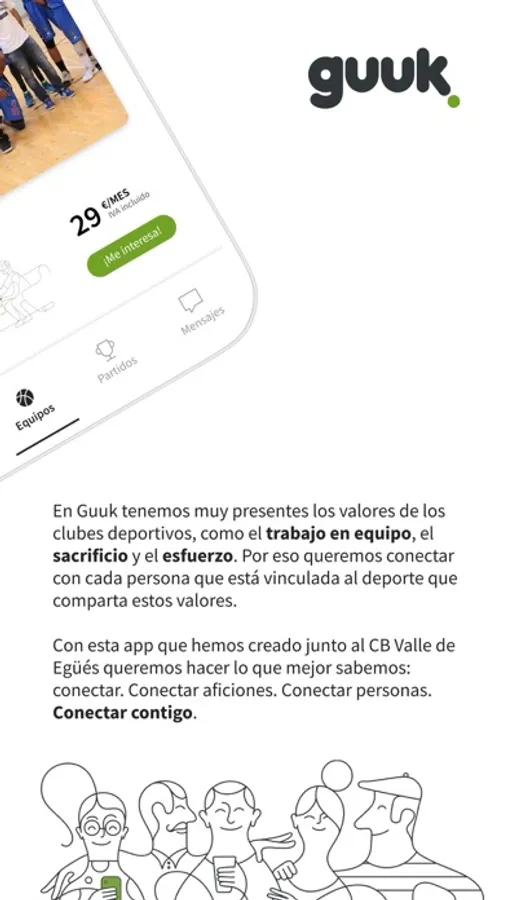 Con la creación de esta aplicación, en Guuk queremos hacer lo que mejor sabemos: Conectar. Conectar con la afición. Conectar con las personas. Conectar contigo.