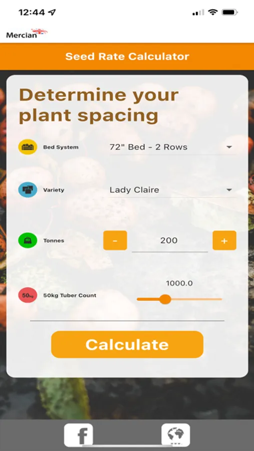 This App advises on the optimum spacing between Potato seeds, depending on variety, bed width, tonnage, and tuber count.