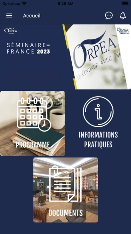 L'application officielle des évènements ORPEA. Restez connecté et tenez-vous informé de l'actualité de vos évènements.