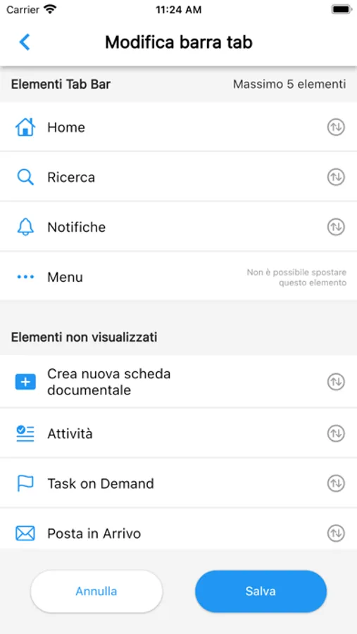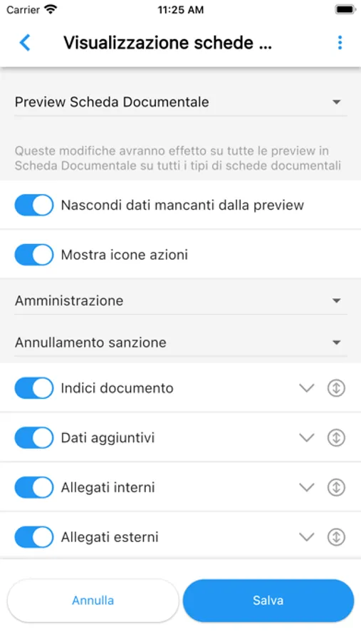 Allo stesso modo, una volta scelto quali sezioni della scheda documentale ti interessa vedere, potrai settarle rapidamente, così come l'ordine in cui mostrarle.
