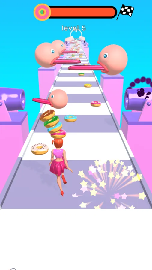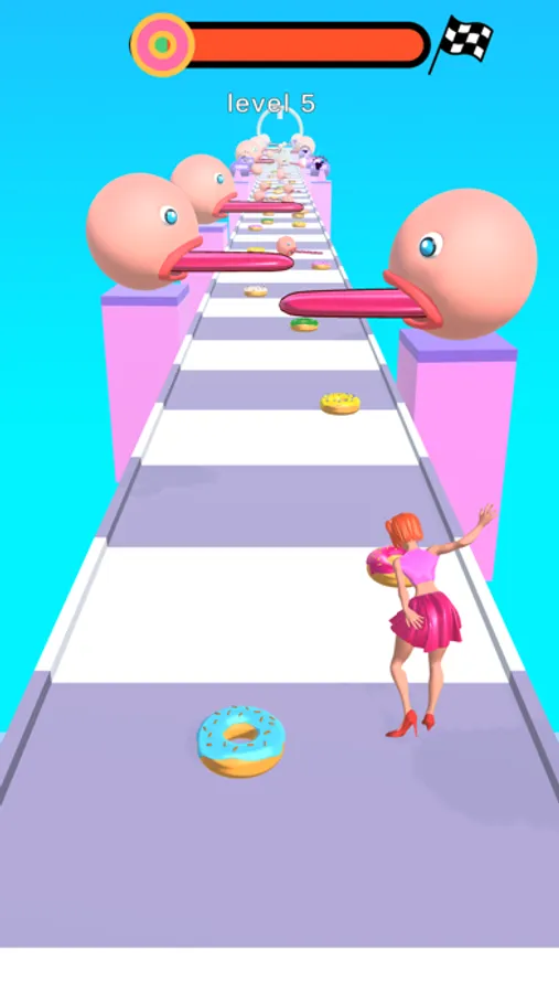 Collect donuts and smash'em! Donut Trap is an action game of a cute girl collecting and carrying donuts. Beware donut monsters with extentional tongues, don't get licked and complete your journey without losing your donuts.