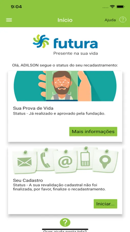 Aplicativo de Prova de Vida e Recadastramento da Futura, que auxilia os pensionistas/assistidos e BPDs por meio de uma solução de inteligência artificial, utilizando reconhecimento facial e de documentos