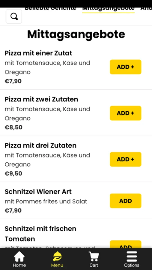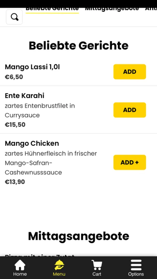 - Durchsuchen Sie die Speisekarte des Restaurants und sehen Sie sich alle anpassbaren Optionen im Voraus an