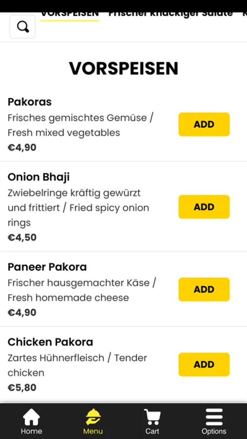 - Durchsuchen Sie die Speisekarte des Restaurants und sehen Sie sich alle anpassbaren Optionen im Voraus an