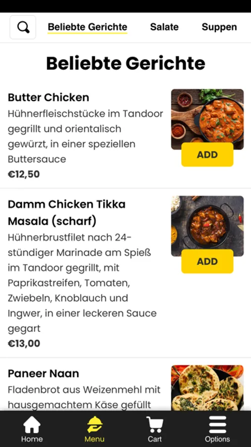 - Durchsuchen Sie die Speisekarte des Restaurants und sehen Sie sich alle anpassbaren Optionen im Voraus an