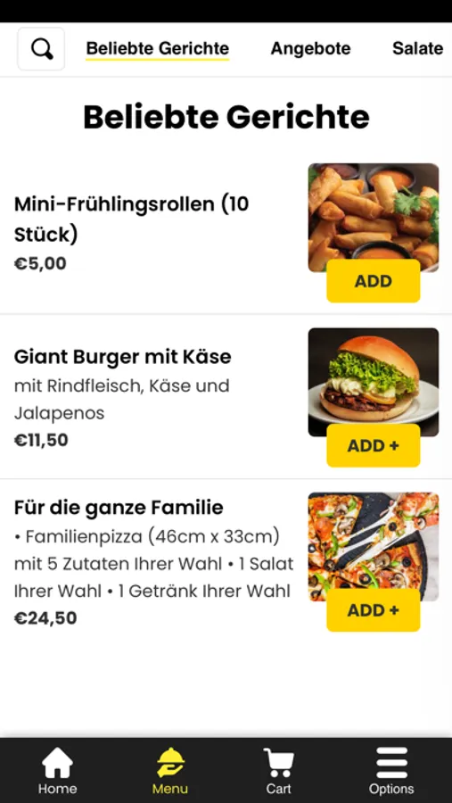 - Durchsuchen Sie die Speisekarte des Restaurants und sehen Sie sich alle anpassbaren Optionen im Voraus an