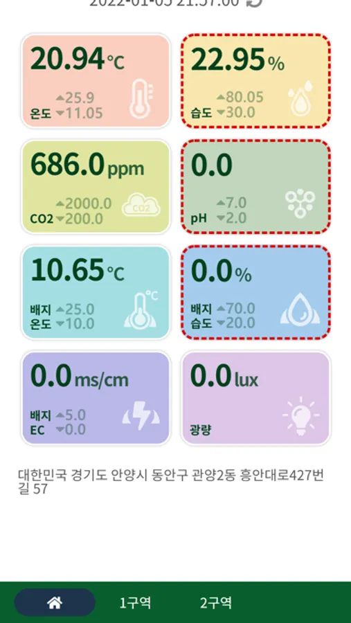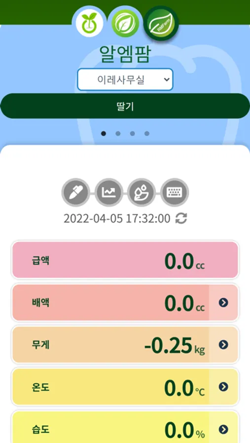 파밍온을 통해서는 온도, 습도, CO2 및 배지온도 정보를, 파밍온2를 통해서는 온도,습도, CO2, EC, PH, 광량 등의 정보를, 알엠팜을 통해서는 배지의 무게, 급액, 배액, 배지온도, 배액 EC, 배액 PH 등의 정보를 받아 모니터링 할 수 있다.