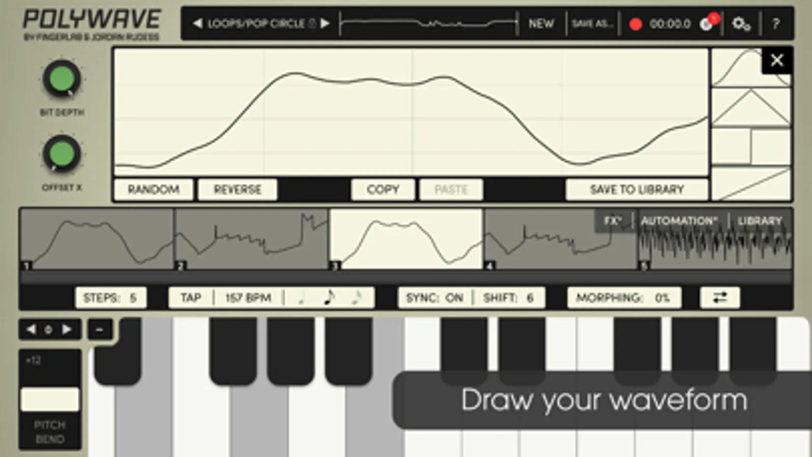 PolyWave allows you to use your own finger to draw distinct and unrepeatable waveforms. Simply move your finger along your screen, and watch and listen as your unique musical exploration unfolds. With our expansive waveform library at your disposal, the possibilities are endless!
