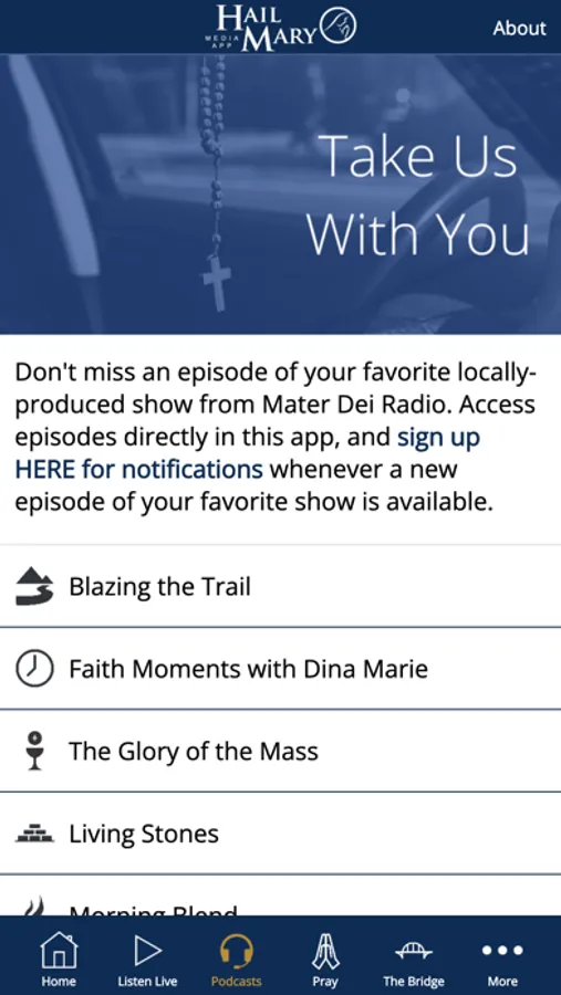 The Hail Mary Media app is produced by Mater Dei Radio, a Catholic apostolate dedicated to bring souls to Jesus Christ through the Blessed Virgin Mary.