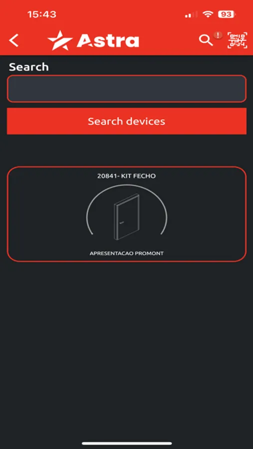 Conecte-se a um dispositivo ao clicar nele na barra inferior da página principal do app, localize seu ambiente pela página de search(ícone da lupa) ou escaneie-o pelo qrCode na página de scan(ícone de qrCode).