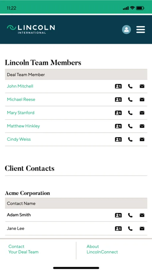 Lincoln International's proprietary client portal, LincolnConnect, is a secure and easy to use collaboration tool for clients and their Lincoln deal teams. The platform supports all stages of the deal and provides a real time source for document sharing, timeline and calendar management, etc. - enabling even greater process and communications effectiveness and efficiency.