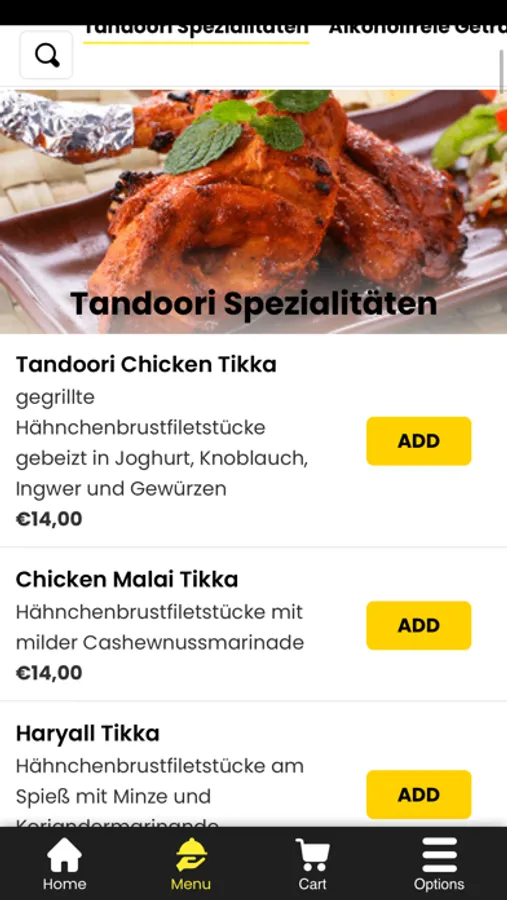 - Durchsuchen Sie die Speisekarte des Restaurants und sehen Sie sich alle anpassbaren Optionen im Voraus an