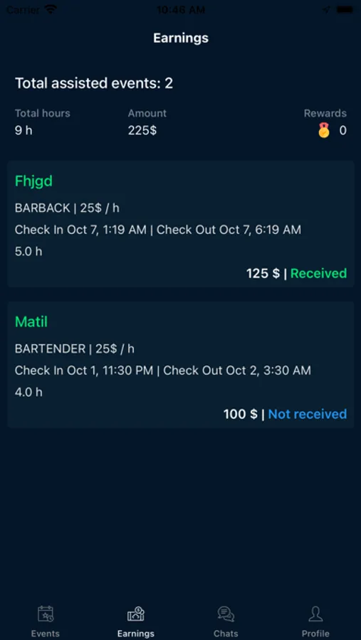√ Earnings: Check your earnings and rewards by number of events