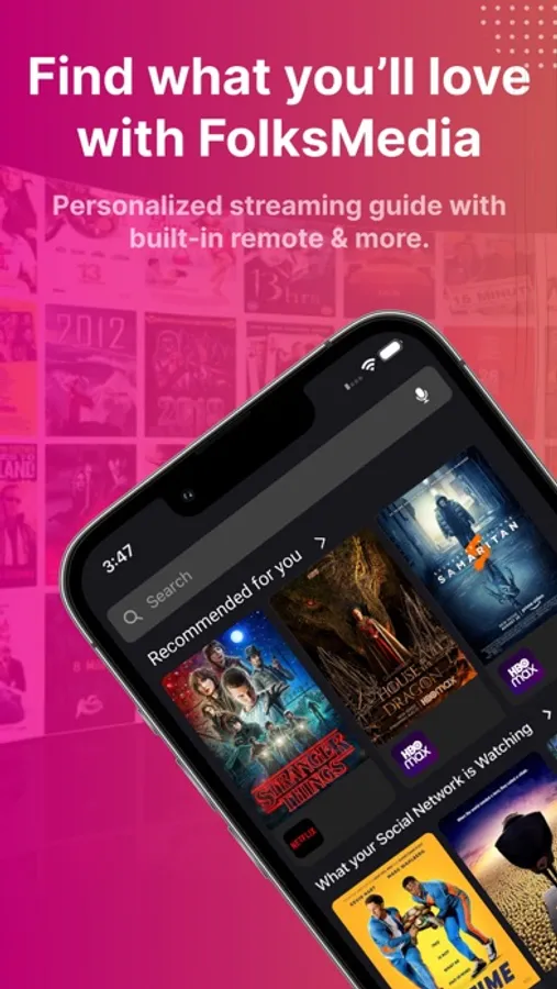 We connect you to your content directly on your smart phone or use the built-in remote control for your TV/streaming device. Discover movies & TV shows on Netflix, Amazon Prime Video, Disney+, HBOMax, Hulu, Showtime, Starz, Paramount+, and more. Find free movies & TV shows from Tubi, Pluto, Vudu, and others. Use our remote control feature now with Roku TV, Fire TV, Android Smart TVs, and Samsung Smart TVs. Plus you’ll earn rewards for being part of the FolksMedia Community.