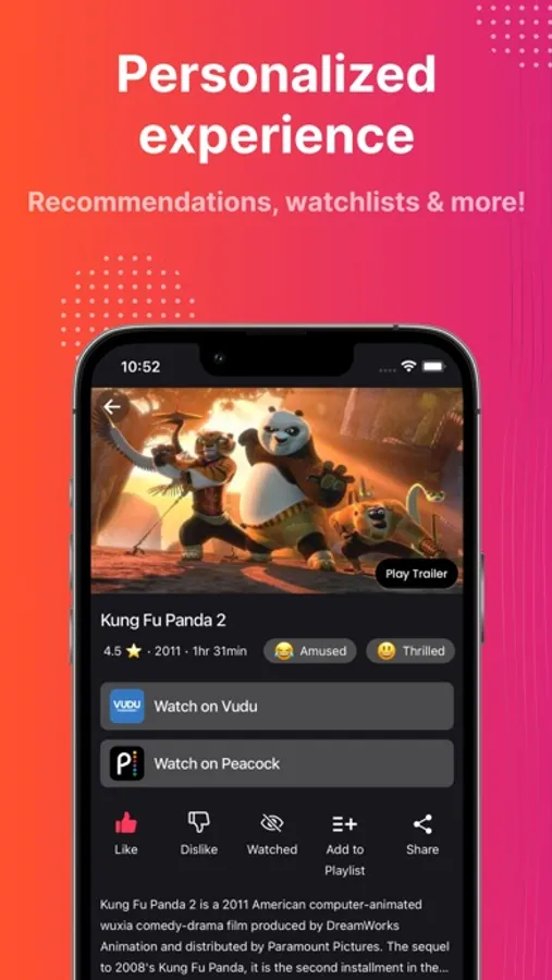 > Personalized movies & TV show recommendations across all of your streaming services in one place