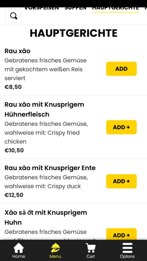 - Durchsuchen Sie die Speisekarte des Restaurants und sehen Sie sich alle anpassbaren Optionen im Voraus an