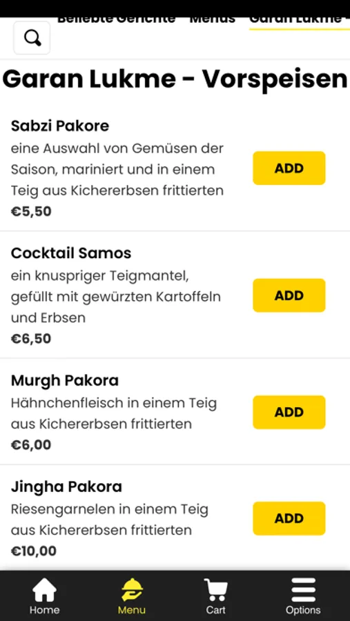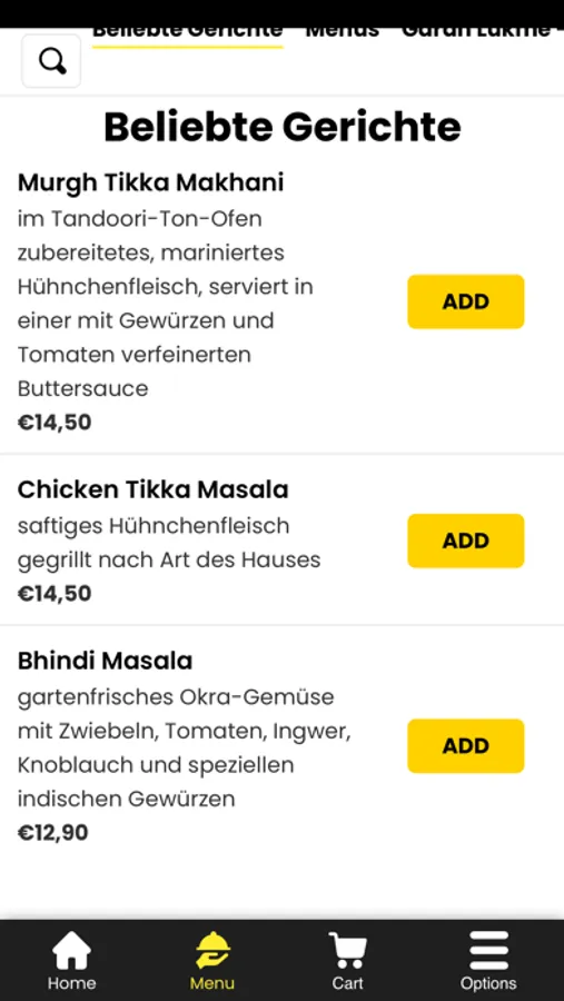 - Durchsuchen Sie die Speisekarte des Restaurants und sehen Sie sich alle anpassbaren Optionen im Voraus an