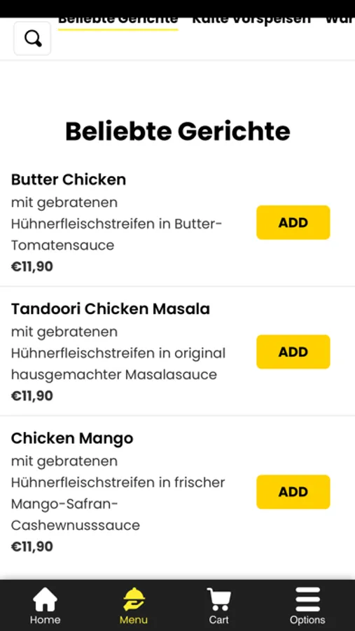 - Durchsuchen Sie die Speisekarte des Restaurants und sehen Sie sich alle anpassbaren Optionen im Voraus an