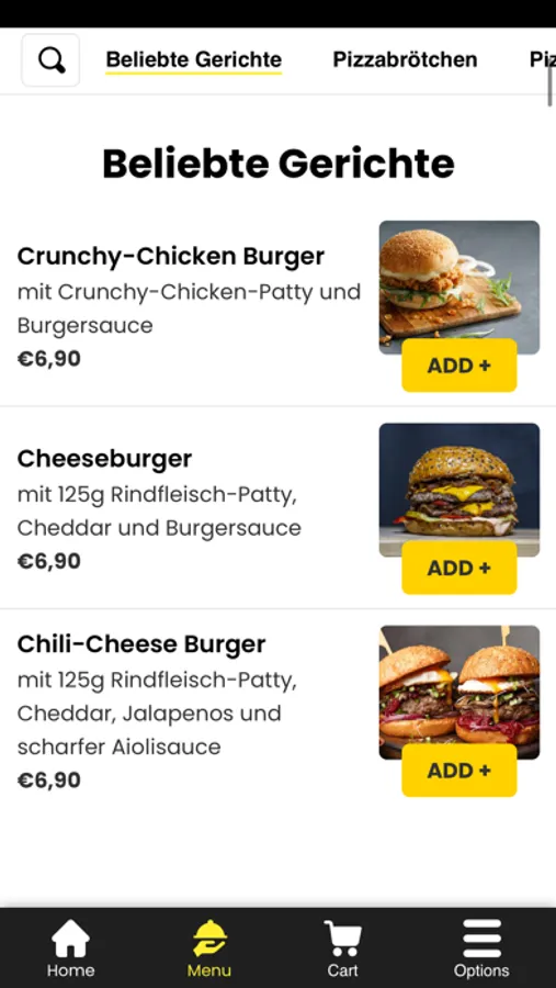 - Durchsuchen Sie die Speisekarte des Restaurants und sehen Sie sich alle anpassbaren Optionen im Voraus an