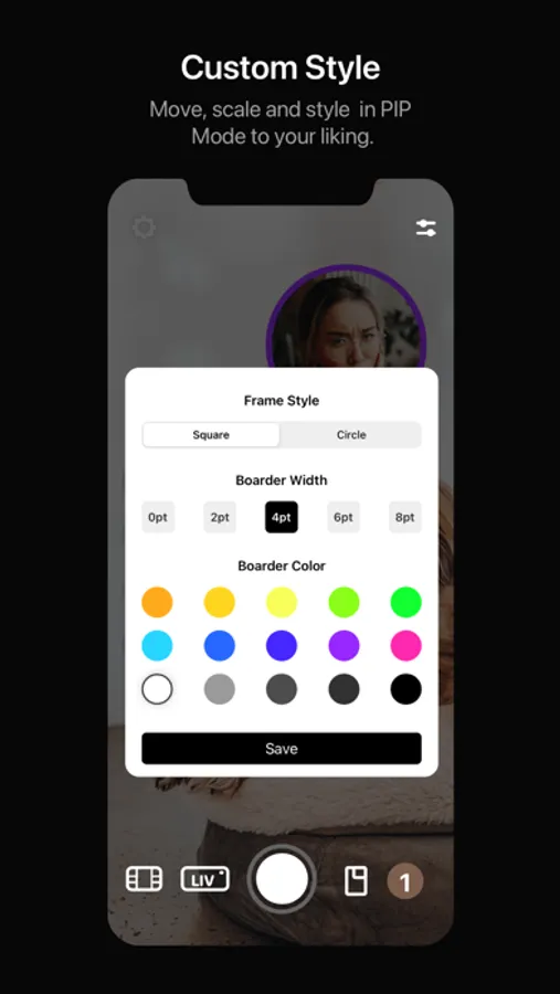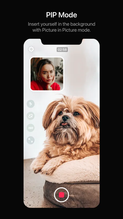 • PIP Mode - Picture in Picture allows you to record from each camera via a customizable floating window.
