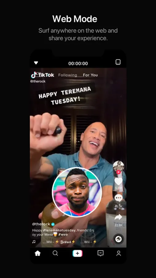• Web Mode - Record yourself while you search the web. Walk through websites, watch videos, play games, report on the news.