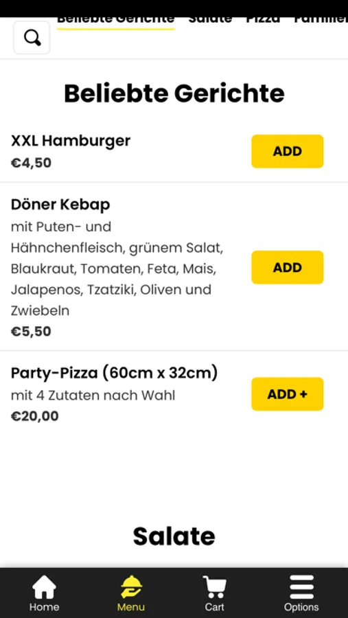 - Durchsuchen Sie die Speisekarte des Restaurants und sehen Sie sich alle anpassbaren Optionen im Voraus an