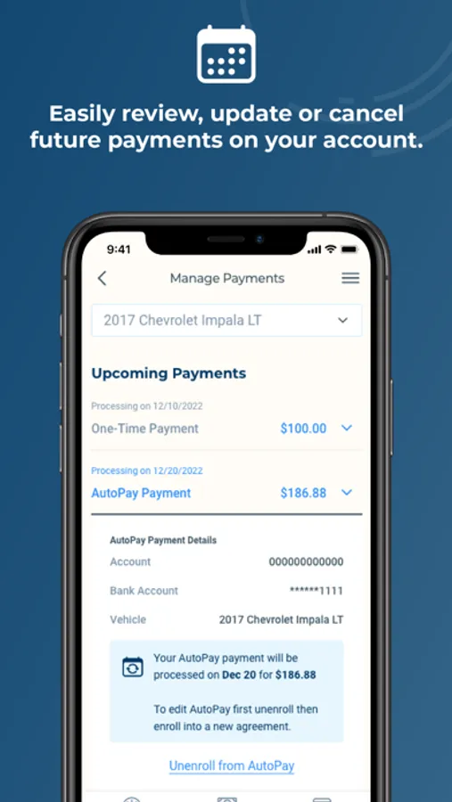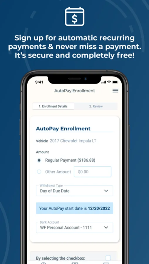 Never miss a payment when you sign up for AutoPay with automatic recurring payments that are completely free and secure. The app lets you update your AutoPay enrollment details including the withdrawal date and recurring payment amounts.