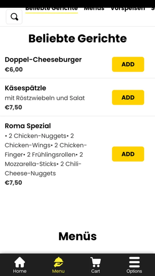 - Durchsuchen Sie die Speisekarte des Restaurants und sehen Sie sich alle anpassbaren Optionen im Voraus an