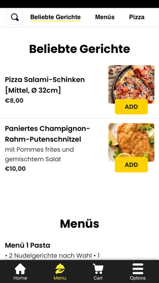 - Durchsuchen Sie die Speisekarte des Restaurants und sehen Sie sich alle anpassbaren Optionen im Voraus an