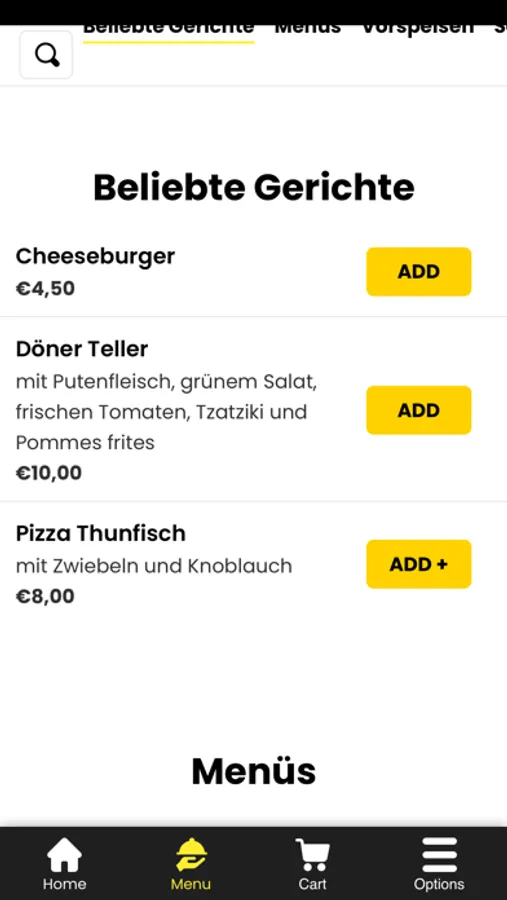 - Durchsuchen Sie die Speisekarte des Restaurants und sehen Sie sich alle anpassbaren Optionen im Voraus an