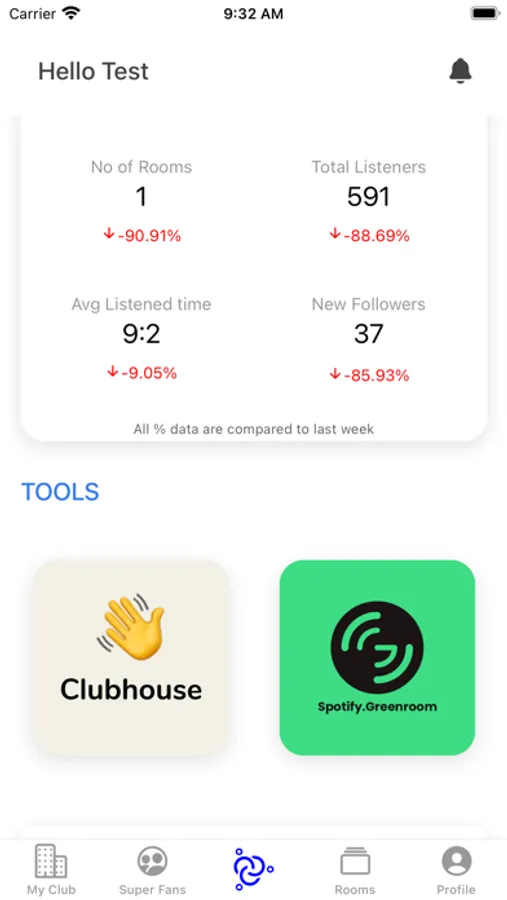 SocialConnector helps you access insights across social-audio platforms on your rooms performance, compare weekly performance based on your past rooms, identify your superfans, and find out what makes your room better.
