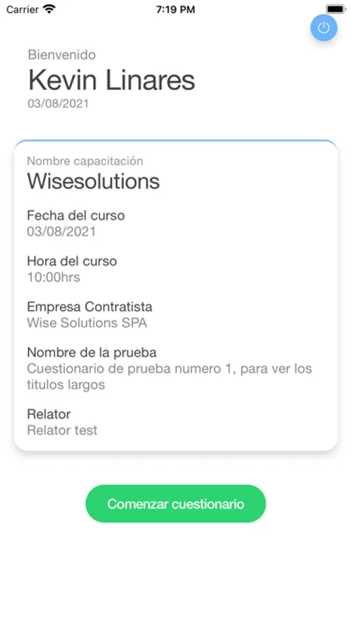 App de cuestionarios trabajadores de contratistas de capacitaciones impartidas por Enel Distribución.