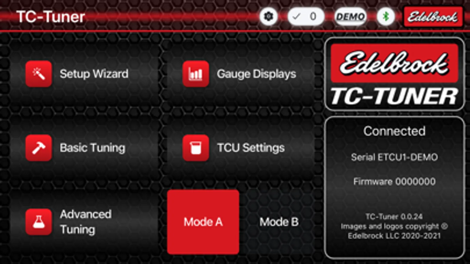 The TC Tuner App works with the Edelbrock TC Transmission Controller, providing a simplified and intuitive UI with wireless Bluetooth communication between mobile devices and Transmission Control Unit for setup, calibrating, and monitoring data. TC Tuner includes a Setup Wizard to further simplify user functionality. No software, tuning experience, laptop or wired handheld unit is required.