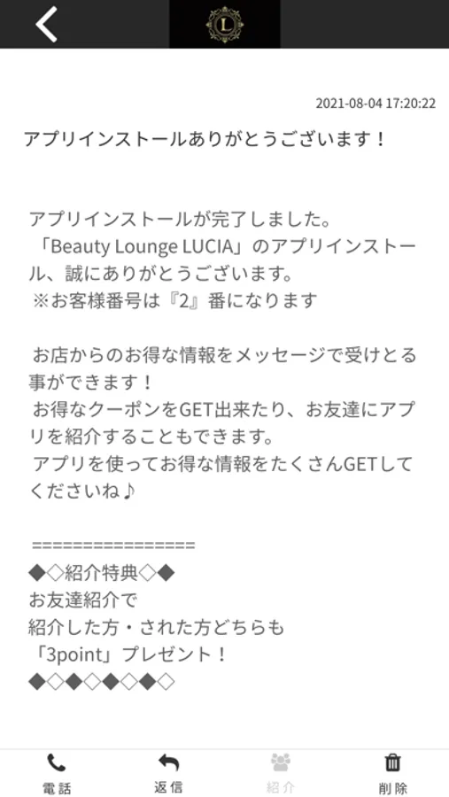 LUCIAのアプリをSNSを通じてお友達に紹介する事ができます。