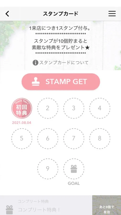 たくさん貯めていただくと次回使える特典をご用意しております。