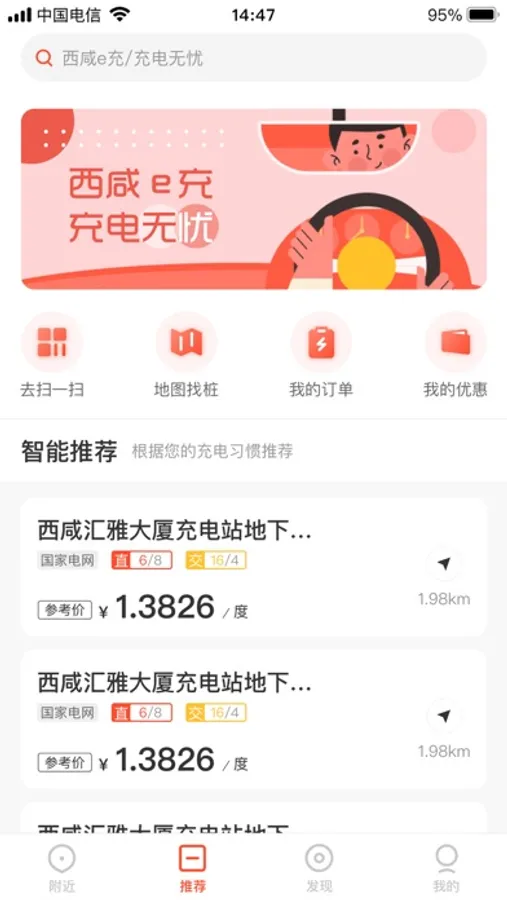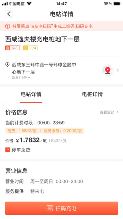 • 找桩地图:通过地图模式查看周边或其他坐标附近的可用充电站。