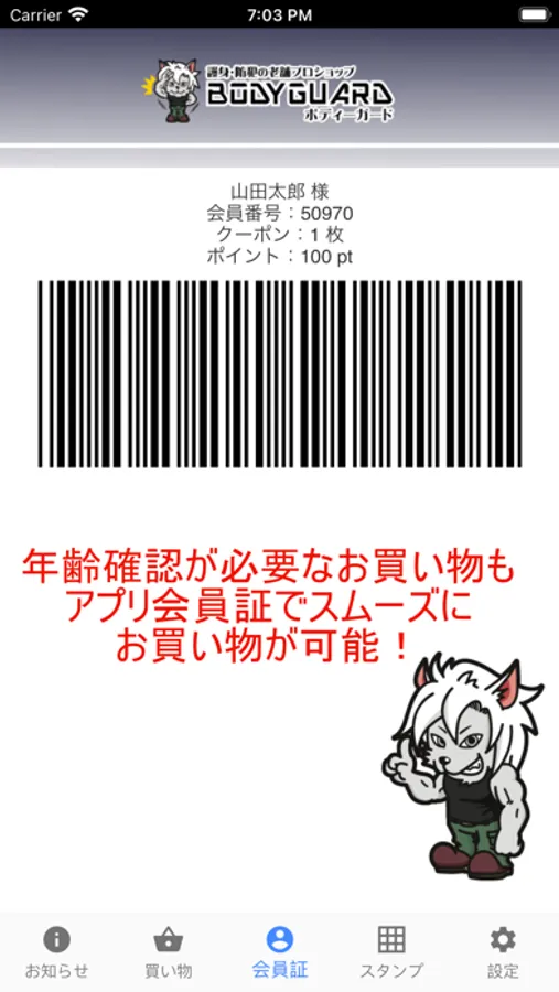 護身用品等の身分証の必要な商品の購入もアプリ会員なら初回だけの確認となります。