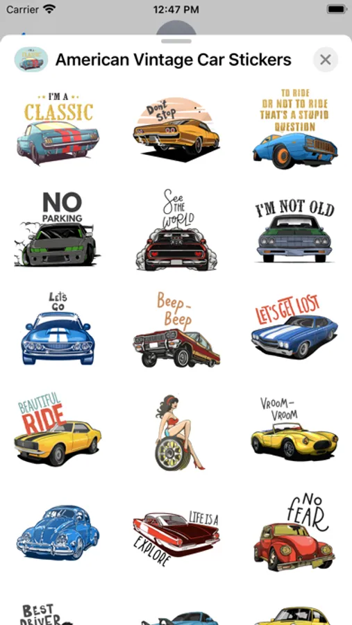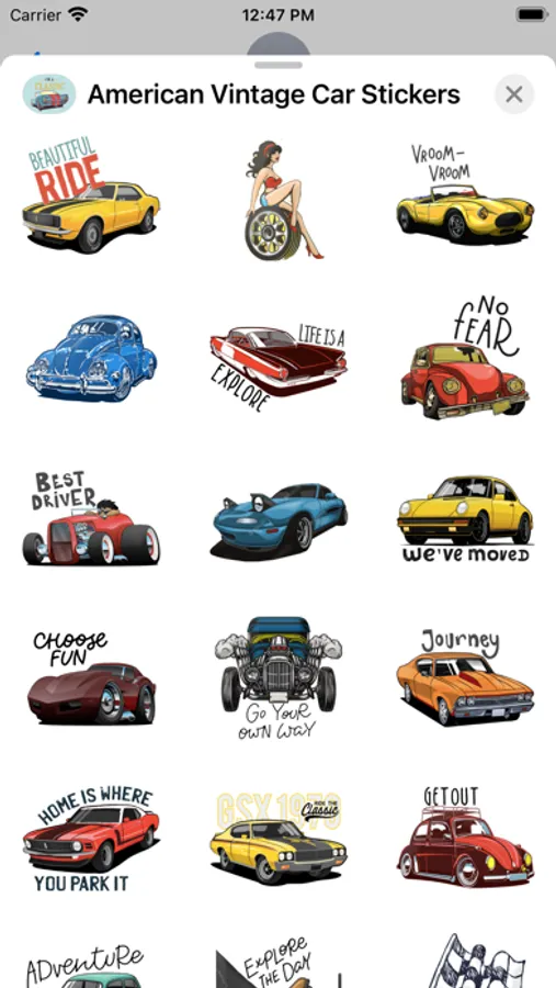 Stickers for iMessage! Vintage cars for sticking fun.