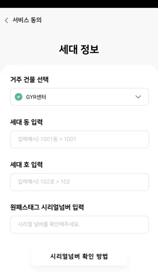 원패스 태그의 시리얼 번호를 입력하여 회원 가입 후,