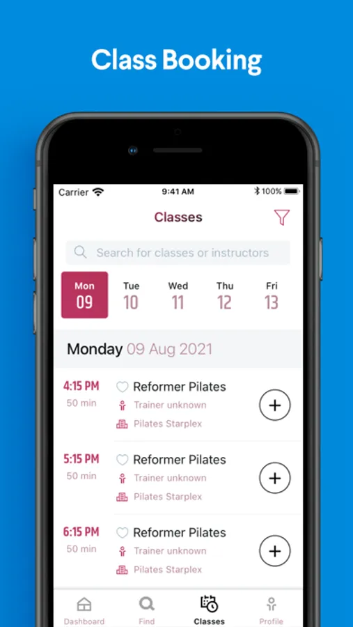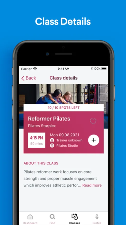 - Book classes with your favorite club