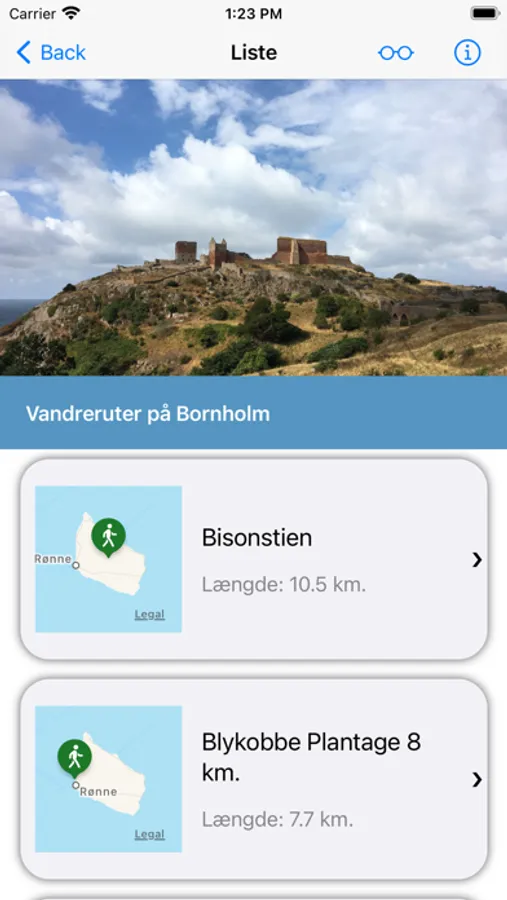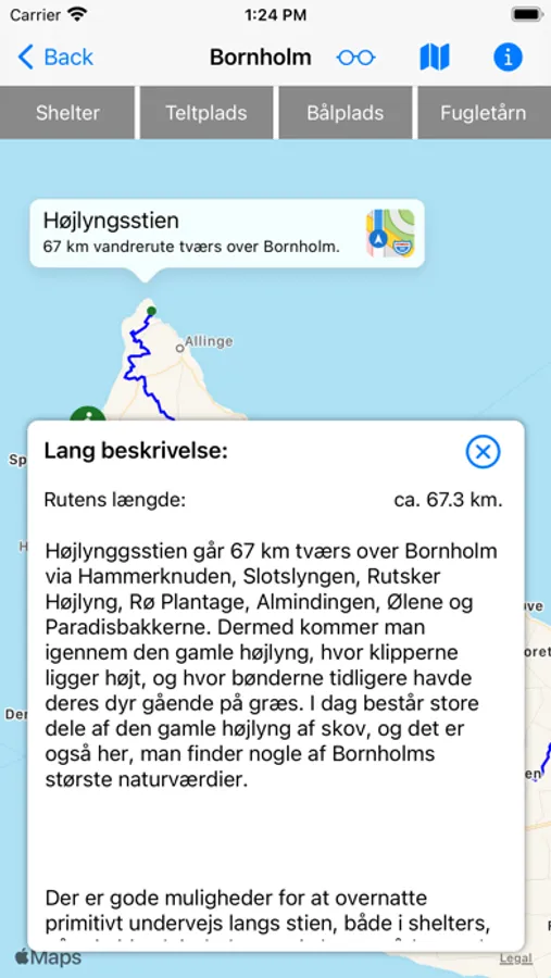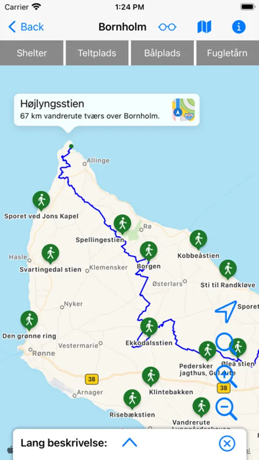 Klik på ikonet der markerer en rute og få information om rutens længde, kørselsvejledning og længere beskrivelse af ruten.