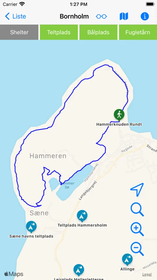 Hvis du accepterer brug af din lokation har du endvidere mulighed for at se hvor du er på ruten og i hvilken retning du skal gå.